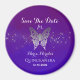Moderne, élégant, unique, papillon argenté faux pailleté en combinaison avec un fond bleu royal violet adorable. Aimant d'invitation de sauvegarde de Quinceanera chic, fantaisiste et intemporel.