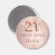 Élégant, classique, glamour et féminin, aimant d'invitation pour une fête d'anniversaire de 21 ans. Fond dégradé rose gold et blush. Décoré de confettis rose gold. Personnalisez et ajoutez un nom. Le nom est écrit avec une police de caractères manuscrite de couleur rose foncé moderne. Le numéro 21 est écrit avec une police de caractères de style ballon.