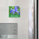 iris bleus et feuilles verts. cet aimant frais est un rappel que vous devriez garder vos aliments frais et ne pas acheter trop à la fois! :)