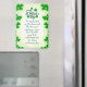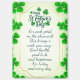 Visual Elements: The card features numerous green shamrocks near the top center. The overall color scheme is green and gold.