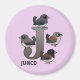 Quatre juncos différents perchent sur une lettre en ardoise J. Vous pouvez customiser totalement ce cadeau ! Déplacez le design, changez la couleur ou le style arrière - plan, ajoutez votre propre texte ou vos propres images — faites-le vous-même !