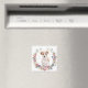 Cet aimant montre l'image d'une couronne de fleurs de printemps en couleurs de rose tendre, bleu, or, vert et crème. Au centre se trouve un beau portrait aquarelle d'un adorable Jack Russell Terrier aux cheveux en fil de fer. De minuscules confettis d'or donnent un éclat subtil à l'arrière - plan. Parfait pour tous ceux qui aiment un Jack !
