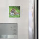 Aimant carré avec l'image d'un beau jaguar allongé dans l'herbe. Le jaguar est une espèce presque menacée et son nombre diminue.