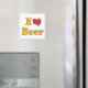 Un aimant drôle dit J'aime la bière. Le « bière » ressemble à une vraie chope de bière.