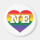 Cet aimant présente un coeur avec un motif de fierté arc-en-ciel et les caractères gras, blancs, majuscules NE, l'abréviation officielle pour Nebraska, l'état de l'éleveur de maïs. Montrez vos vraies couleurs, soutenez l'égalité dans le mariage et célébrez le gay pride.
