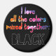 Cet aimant noir clair comporte une légende arc-en-ciel d'aquarelle qui dit : "J'aime toute la couleur mélangée" et le mot "NOIR" dans toutes les polices noires casquettes avec un contour blanc. C'est parfait pour chaque Amant Noir.