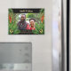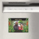 Colourful tropical Wedding Anniversary magnet with Jamaican jungle palm leaves, flowers and butterflies. Customise the text across the bottom to change it to any year wedding anniversary. A beautiful photo keepsake