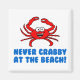 Jamais Crabby At The Beach aimant amusant avec un crabe de dessin animé. Un design idéal pour une maison de plage ou un chalet. Personne n'est jamais en crabe à la plage !