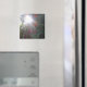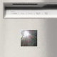 Aimant carré du jardin de soleil. Aimant unique personnalisable de lumière du soleil brillant à travers un jardin arboré et fleuri.