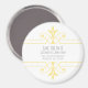 Simple et élégant Fancy Ornamental Save the Date Magnet en jaune et blanc avec une bordure fleurie de style art déco sophistiquée. Facile à customiser, il suffit d'ajouter les détails de votre mariage dans les champs de texte fournis. Cliquez sur "Customiser" pour trouver d'autres options de personnalisation.
