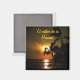 Aimant hawaïen avec jolie photo coucher de soleil sur la plage le long de la côte bordée de palmiers Hawaii.Ce bouton d'état d'esprit de vacances dit que je préfère être à Hawaii. Une belle vue rivale en soirée avec palmiers.