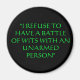 "JE REFUSE D'AVOIR UNE BATAILLE DE WITS AVEC UNE PERSONNE NON ARMÉE"