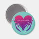 Cet aimant présente un grand coeur rose tenu en 2 mains sur un arrière - plan bleu aqua serein.