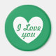 Aimant "Je t'aime" Coeur blanc sur Kelly green