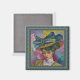 Aimant carré coloré, avec la célèbre peinture à l'huile Femme en Casquette de Jean Metzinger et mis dans un cadre de couleur turquoise. Customisez d'ajouter votre propre texte ou de laisser tel quel, pour une version miniature de ce célèbre tableau prêt à décorer votre surface métallique.