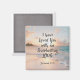 Inspirational quote scripture magnet depicts a beautiful ocean sunset with blue waves on a sandy beach. It features an encouraging Bible Verse Jeremiah 31:3, "I have loved you with an everlasting love." Photograph by Sean Oulashin.