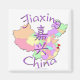 Le Jiaxing de la province de Zhejiang sur une carte colorée de la Chine comprend les symboles chinois pour 'Jiaxing' et sa position est marquée sur la carte avec un coeur et un drapeau. Un cadeau amusant et unique ! Conçu par Hendrika de RedThreadMaps.com