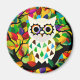 Chouette verte, rouge, bleue, verte et jaune assise sur une branche qui simule l'art folklorique.