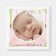 Comme s'il s'agissait d'une page d'un album photo, ce design présente une photo de votre petit, encadré de rayures douces et de pois en rose pastel, vert clair et jaune. Un petit ruban en faux arc et des coins photo à l'ancienne sont ajoutés pour un effet dimensionnel. L'ensemble est tellement agréable. Remarque : cette conception a été faite pour être utilisée sur l'aimant carré, modifier la forme provoquera des changements de format inattendus.