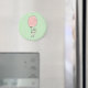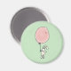 Un aimant rond avec un lapin géant tenant un gros ballon rose flottant dans l'air. Placez-vous sur un arrière - plan vert clair.
