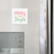 Aimant de Noël moderne avec un design mignon et amusant avec "Joyeux et lumineux" dans joyeux rose pastel et vert lettrage décontracté.