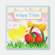 Joli poussette avec corbeille d'oeufs colorés souhaitant Bonne Pâques. Personnalisez aussi le texte que vous préférez.