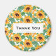 Aimant Merci avec un mignon motif d'été. Joli tournesol jaune entouré de feuilles verts dans un motif répétitif. Un cadre rectangle blanc superposé avec votre texte à l'intérieur.
