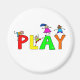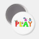 Belle illustration de dessins animés de petites filles et garçons escalade sur des lettres géantes de l'alphabet qui épelent le mot JOUER. Image disponible sur divers cadeaux et produits. Magnets.