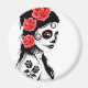Aimant Jour de la fille crâne de sucre mort - blanc