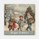 Joyeuses fêtes, jour d'hiver enneigé, enfants se promener.