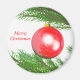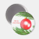 Magnet avec mon oeuvre 3d d'une jolie boule rouge de Noël accrochée à un arbre de Noël. Le texte dit "Joyeux Noël".