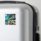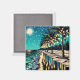 Joli art côtier Ai romantique représentant une rangée de palmiers avec des lumières blanches illuminées. Une jolie réflexion sur la plage de sable et les vagues.