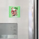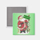 Cet aimant est vert clair avec un joli Père Noël à côté d'un sapin de Noël entouré de petits animaux dont un oiseau, du lapin et un écureuil tenant une pancarte qui dit Joyeux Noël debout dans la neige.