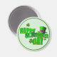 Aimant rond avec "Happy St. Patrick’s Day" imprimé en gros caractères verts avec un casquette vert leprechaun avec un groupe casquette violet, et shamrocks ici et là sur vert clair. Bordure verte. Voir aimants carrés correspondants et aimants de sculpture en acrylique. Voir toute la collection d'aimants de la Saint Patrick dans les TOUCHES SPÉCIALES | Section Favoris.