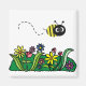 dessin animé coloré d'abeilles survole une tache de fleurs brillantes