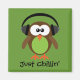 Cool personnalisable carré vert Just Chillin' aimant avec un mignon hibou de bande dessinée en casque. Un cadeau original et amusant - idéal pour les ados et les mélomanes.