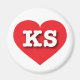 Cet aimant présente un coeur rouge vif contenant les caractères gras, blancs, coques supérieurs KS, l'abréviation officielle de l'état du Kansas, l'état du tournesol.