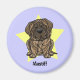 Dessin de Mastiff adorable dessiné en kawaii japonais. La race de chien brindle s'assied avec sa tête inclinée devant une énorme étoile jaune, avec le nom de la race imprimé en dessous. Cadeaux mastiff anglais uniques et super mignons pour les amoureux des animaux de compagnie.
