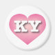 Cet aimant présente un coeur rose calme, cool et recueilli, avec un centre blanchi à la chaux contenant les lettres coques hautes, blanches et audacieuses KY, l'abréviation officielle du Kentucky, l'état de l'herbe bleue.