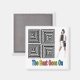 Aimant carré avec une image d'Op Art gris et noir, une femme habillée en noir et blanc de mode mood, et les mots "The Beat Goes On" ci-dessous en lettres arc-en-ciel. Voir la collection d'aimants Disco les années 70 dans TOUCHES SPÉCIALES | Section Favoris.