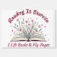 Design coloré et dynamique, avec un livre ouvert avec des fleurs sauvages. Le texte coloré dit : "La lecture est de l'exercice. Je lève les livres et les feuilles de papier". Ce design est disponible sur une grande variété de produits.