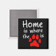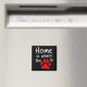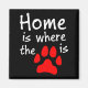 Un jeu de mots avec la citation "Home is where the heart is", cet aimant carré a les mots "Home is where the [image empreinte de patte] is", avec l'image empreinte de patte en rouge, représentant le "coeur". Le cadeau idéal pour les amoureux des animaux de compagnie.