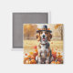 Un tableau aquarelle d'un chien gai assis au milieu d'un tas de feuilles d'automne vibrantes, entouré de minuscules citrouilles et de glands épars. Le chien porte un petit casquette pèlerin et des poutres de joie, capturant l'esprit de Thanksgiving. Dans l'arrière - plan, les champs de moissons et les arbres dorés créent une ambiance campagnarde paisible. Des textures douces et des tons d'automne chauds et feutrés confèrent à la scène une atmosphère cosy et nostalgique parfaite pour célébrer la beauté de la saison.