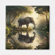 Aimant éléphant. Une illustration assez sereine d'un éléphant debout dans la forêt qui se réfléchit dans l'eau. Une oeuvre d'art calme et tranquille pour vous aider à vous détendre.