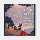 La route des Alpes Services automobiles de tourisme de la mer à la haute montagne. Affiche de voyage pour la France montrant un touriste et un guide-conférencier dans un circuit PLM (Compagnie des chemins de fer de Paris à Lyon et à la Méditerranée) avec route de Nice à Evian et au-delà.