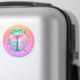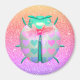 Mignonne coccinelle en vert menthe, recouverte de coeurs aux couleurs rose, violet et vert. Elle a un arc en mousseline autour du cou et est posée sur une parties scintillant ombragée arrière - plan de violet, rose et pêche.