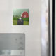 Le premier Noël d'un veau dans une nuit étoilée. Comme cette petite chose est belle contre un arrière - plan d'arbres de Noël décorés et c'est probablement la maison, la grange rouge. Ne perdez pas la trace des invitations et événements importants pendant les vacances. Utilisez cet aimant pour les garder en vue sur la refrig!