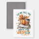 Design paisible et coloré avec une scène automne / automne avec un livre ouvert, citrouille et café. Le texte inspirant et coloré dit : "Laissez-moi vous parler de mon Jésus". Ce design est disponible sur une grande variété de produits.