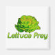 Texte : "Laitue Prey" dans une police verte brillante avec des feuilles de laitue ouverte au-dessus. Parfait pour les végétariens, les amateurs de salades et tous ceux qui aiment jouer au jeu de mots.