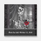 Le véritable amour ne s'évanouit jamais. Et ce portrait encadré d'un squelette tenant un rose au-dessus de son "coeur" le prouve. Accentué par des crânes et des roses rouges profondes dans le coin inférieur et un cadre "grungé" orné. Magnifique pour votre mariage gothique ou toute occasion spéciale.